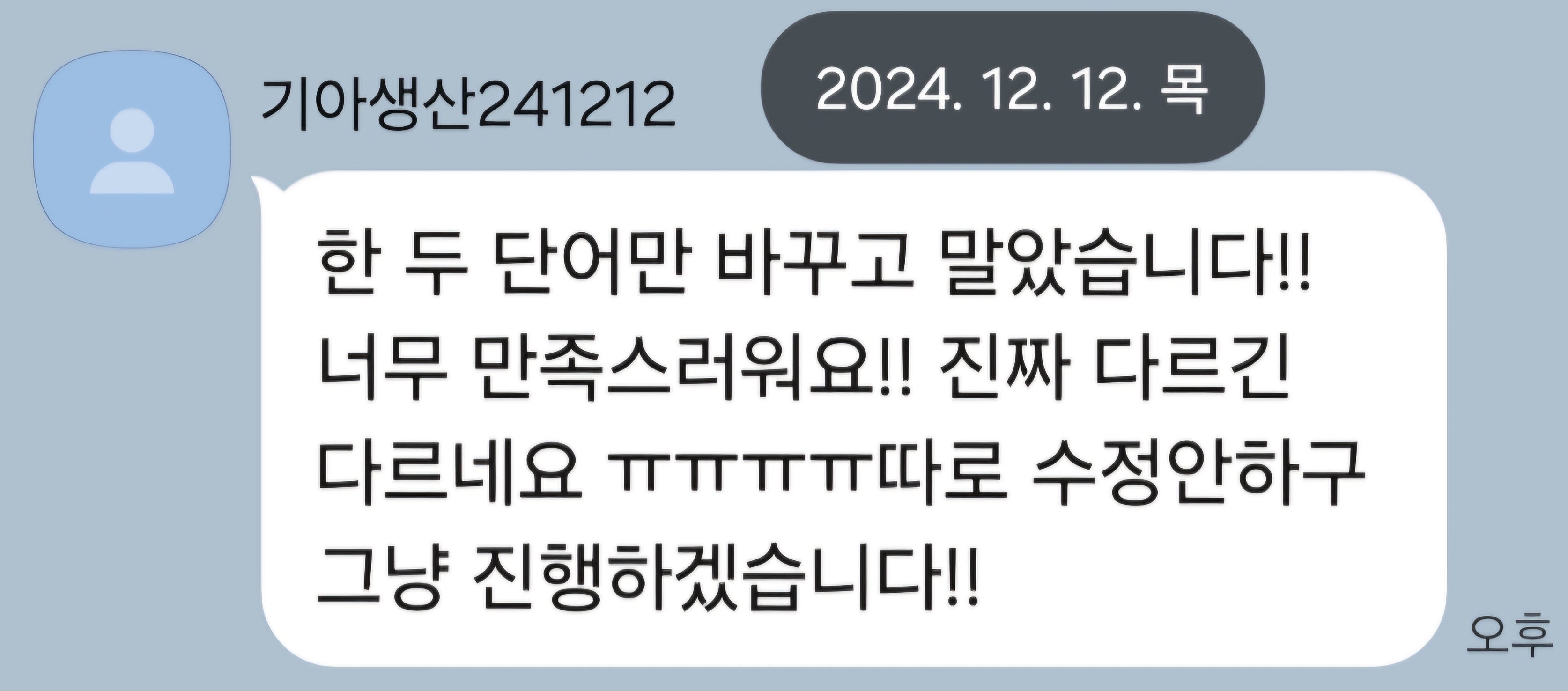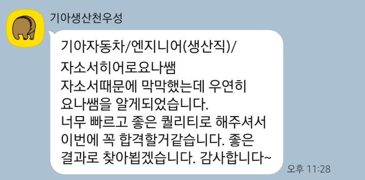 “A님은 기술 인력을 강조하는 문항 작성에서 경험을 구체적으로 연결하지 못해 어려움을 겪으셨습니다. 저희는 A님의 생산 관리 경험과 현대자동차의 직무 특성을 연결해 스토리를 강화했고, 서류 합격 후 면접까지 성공적으로 통과하셨습니다.”