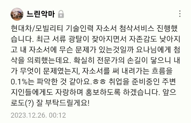24시간 내 #자소서첨삭 #자소서대필 자기소개서첨삭