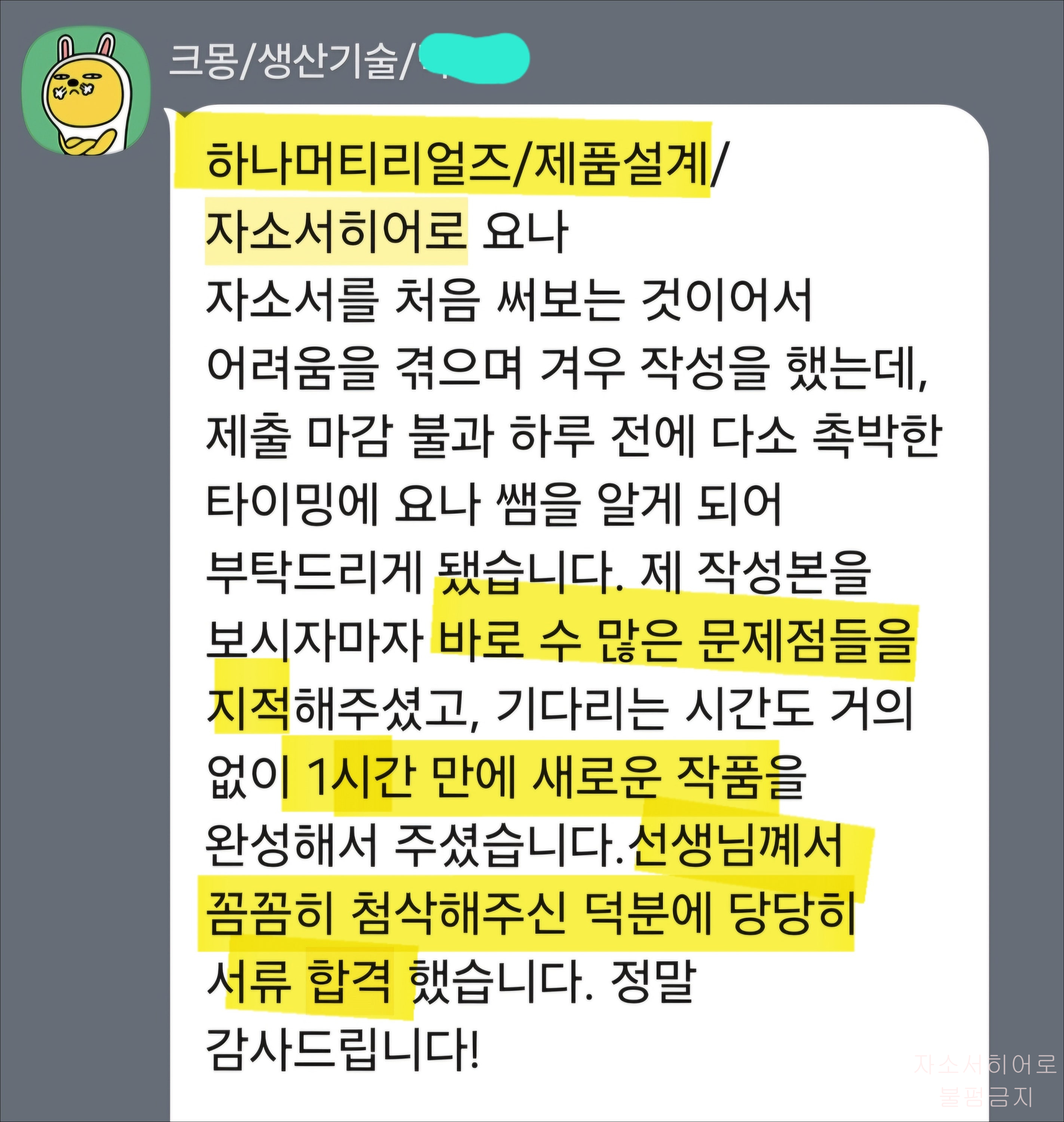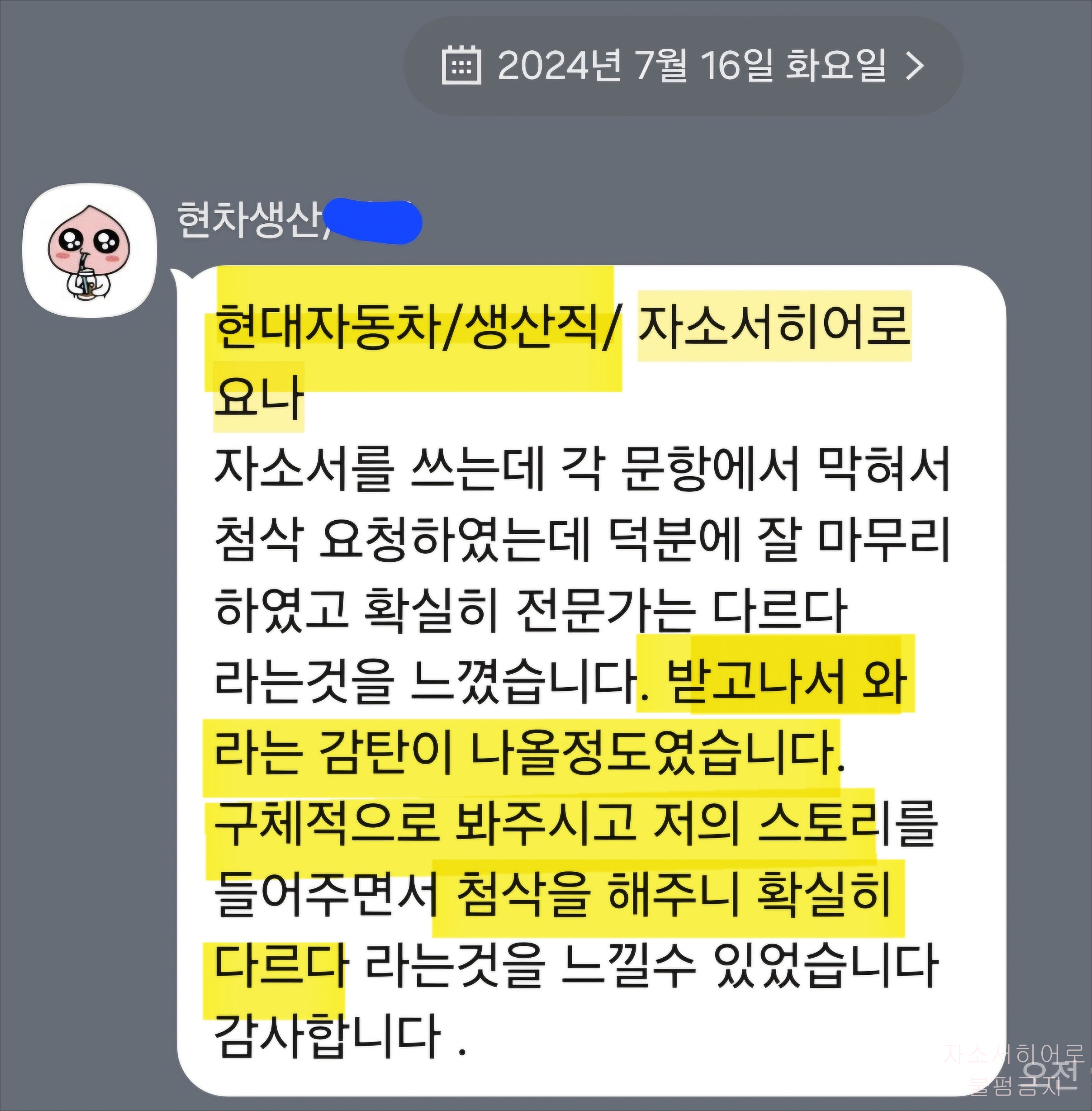 <자기소개서 첨삭 대필 후기>