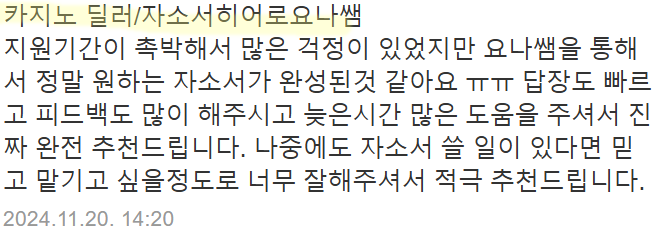 #당일첨삭 #자소서첨삭 #자기소개서첨삭 #자소서대행 #자기소개서대행 #취업자소서 #경력기술서 #이직 #취업 #대입