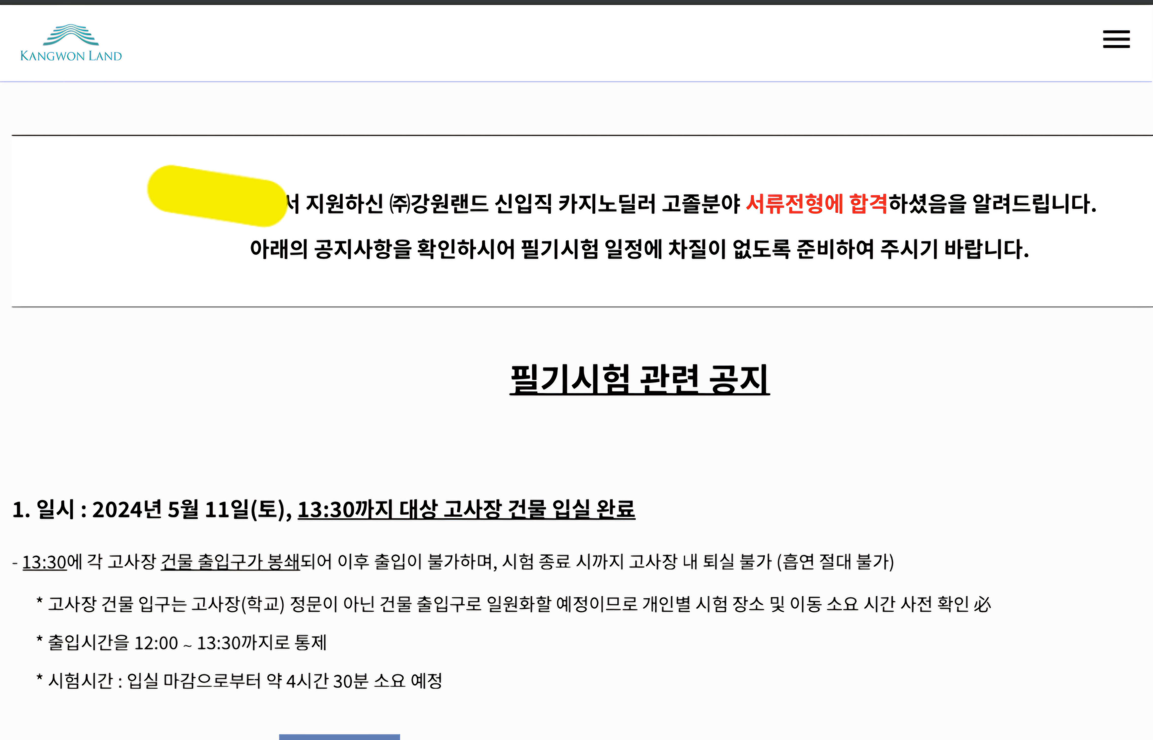 2025년 강원랜드 채용 일정 안내