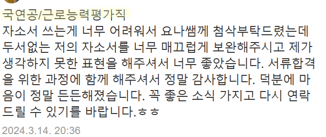 - 수차례 피드백과 수정 지원: 서류 제출 전까지 최종 점검