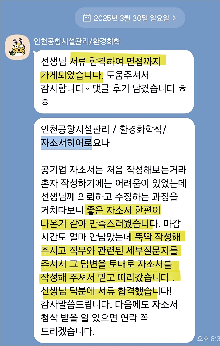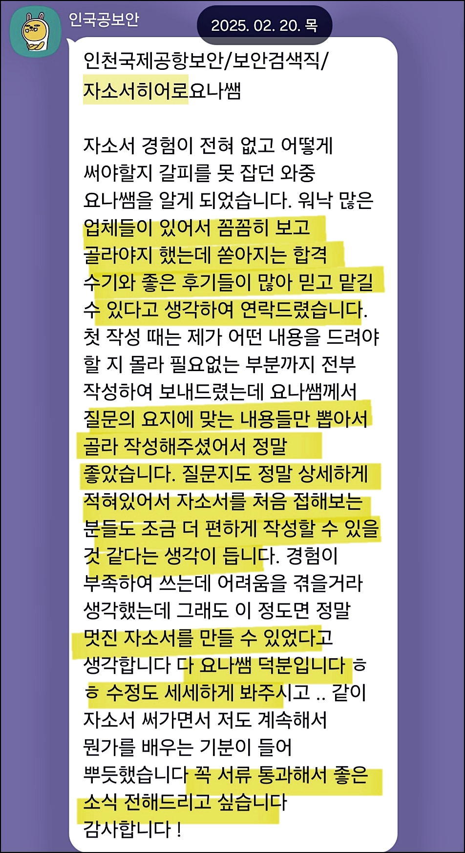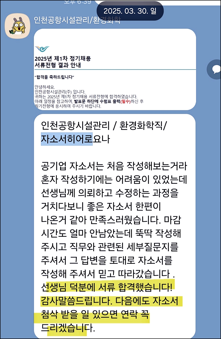 맞춤형 자기소개서 첨삭으로 서류 합격을 보장합니다. 만족도 5.0, 당일 완성 가능!