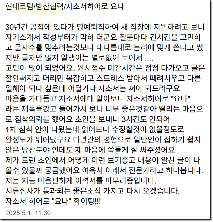 자소서히어로 자소서 상담 첨삭 대필 당일가능 빠른상담