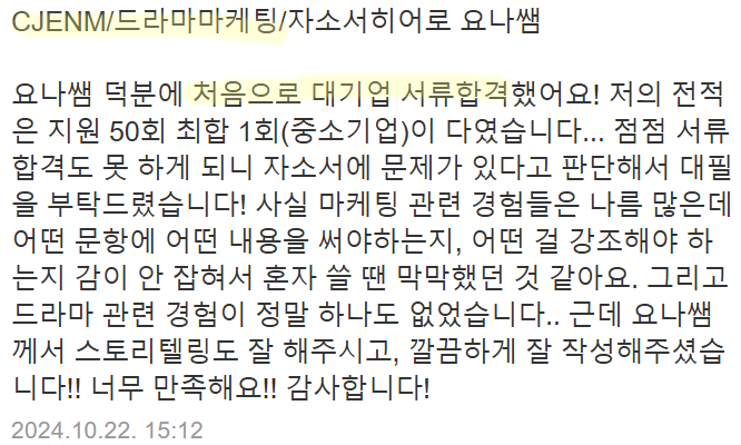 저희는 CJ그룹 자기소개서에 특화된 대필과 첨삭 서비스를 제공하고 있습니다.