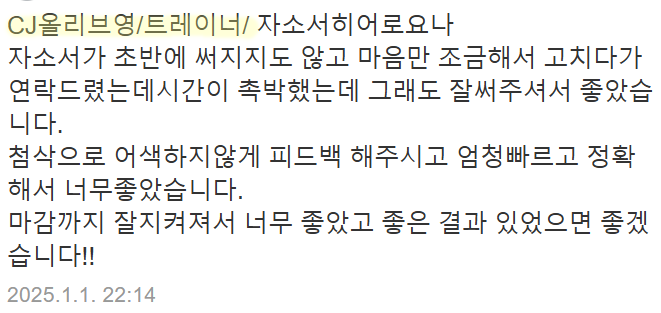 #당일첨삭 #자소서첨삭 #자기소개서첨삭 #자소서대행 #자기소개서대행 #취업자소서 #경력기술서 #이직 #취업 #대입