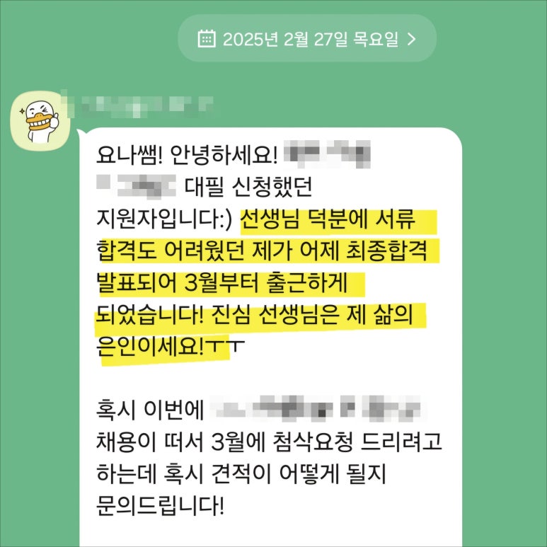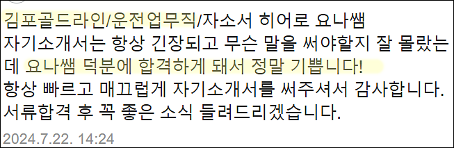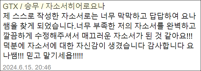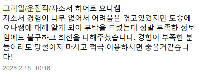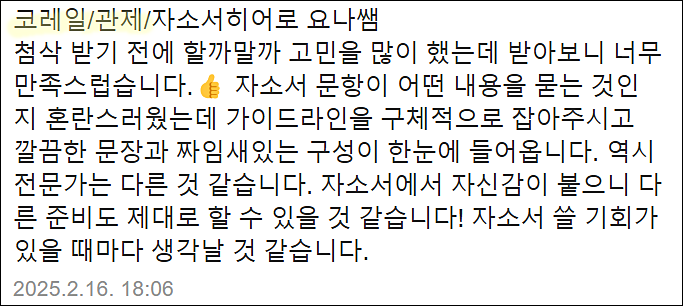 💰 대필 비용: 35만 원 (질문지 제공 후, 이력서/경력기술서 등 참고하여 작성)