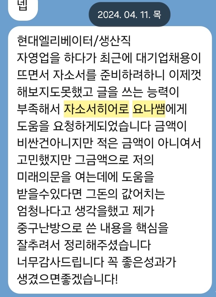 자소서히어로 요나, 첨삭 대필 전문가