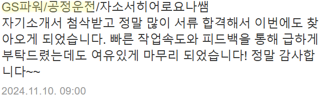 - ✅ 개별 맞춤형 첨삭과 대필 서비스