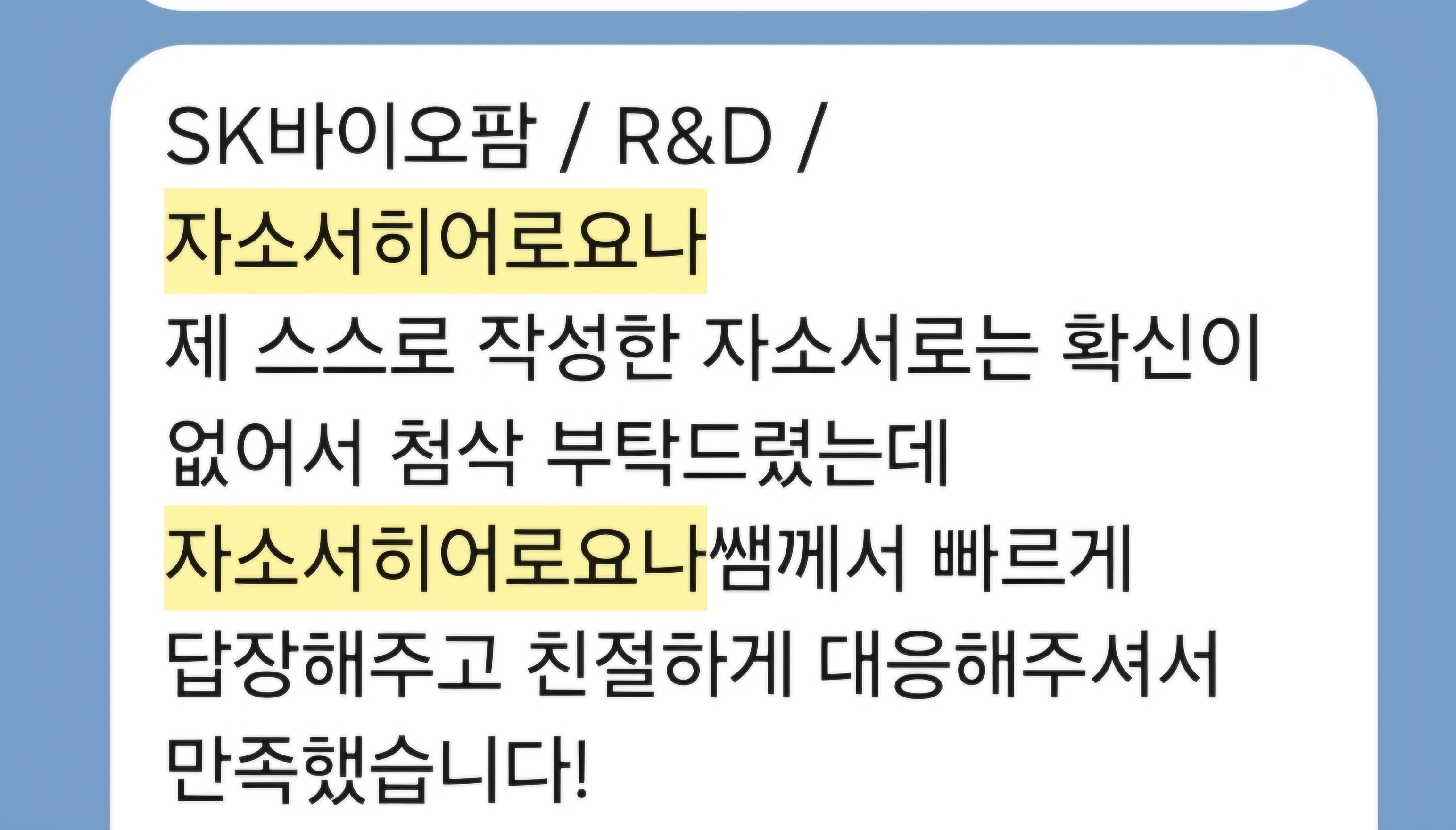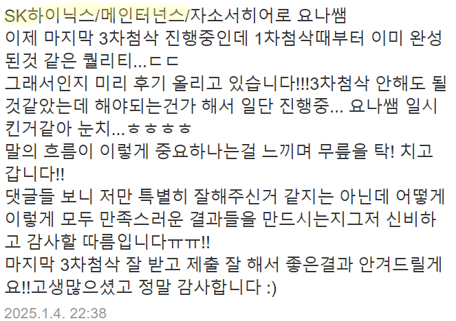 24시간 내 SK하이닉스 합격용 자기소개서를 완성해드립니다.