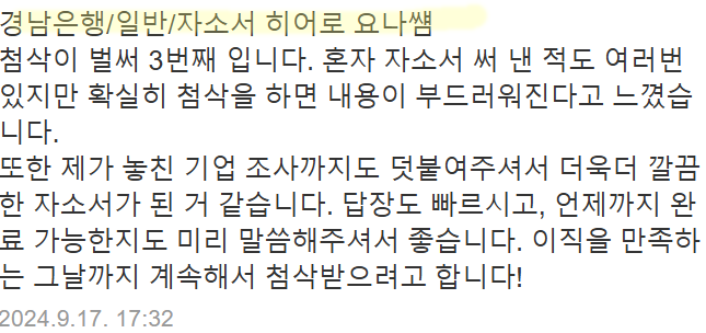 더 다양한 자기소개서 예시는 여기에서 확인해 보세요.