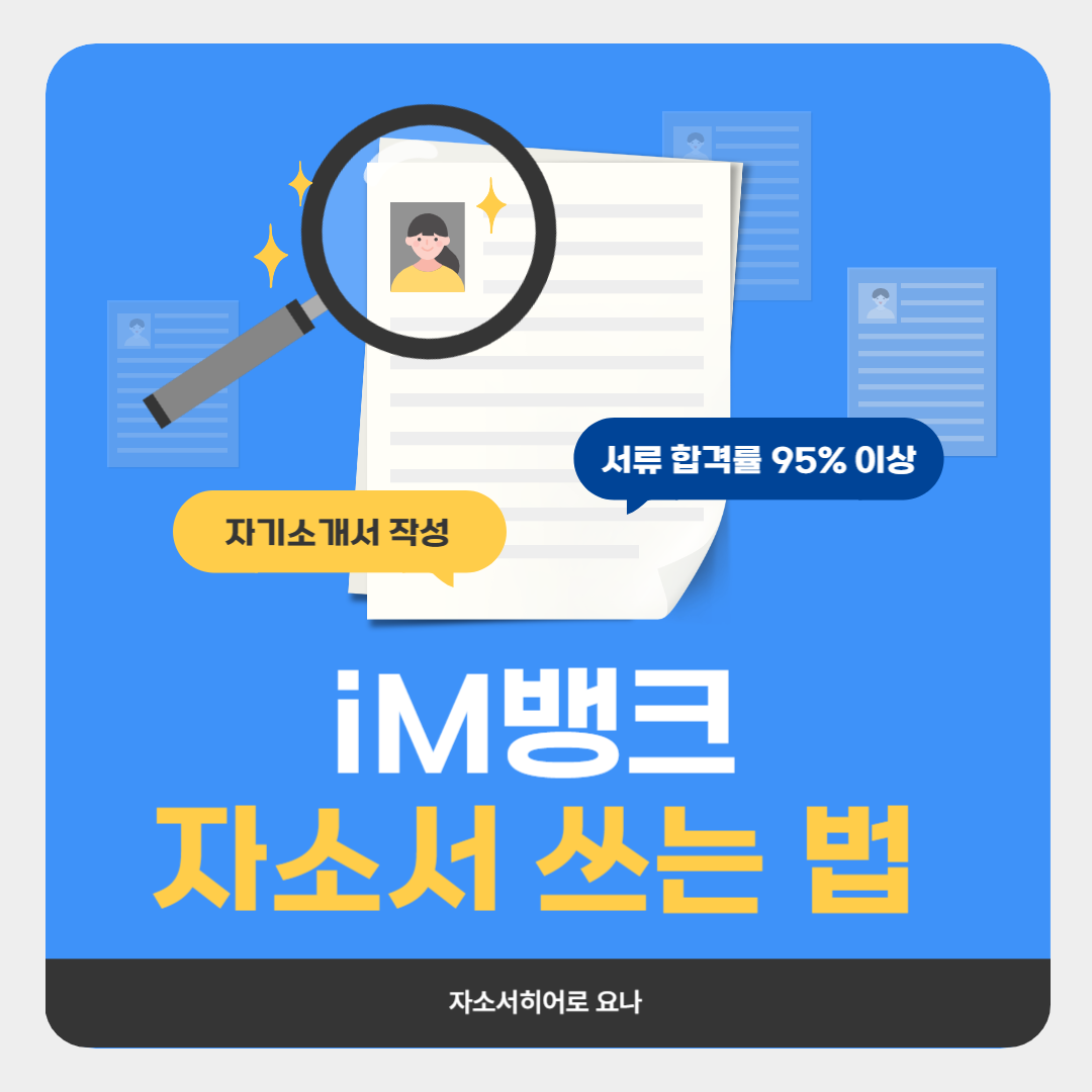 자소서히어로는 iM뱅크의 기업 철학과 직무 특성을 반영하여, 맞춤형 자기소개서를 제공합니다. 고객 맞춤 컨설팅을 통해 서류 합격 가능성을 높이고자 합니다.